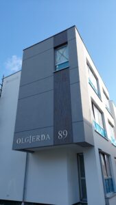 Inwestycja przy ul. Olgierda 89 to nowoczesny budynek wpisujący się w charakter okolicy i stanowiący jej dopełnienie. Wyjątkowy charakter inwestycji podkreśla nietuzinkowa bryła jak również najwyższa jakość zastosowanych materiałów wykończeniowych. Budynek zaprojektowany z myślą o komforcie mieszkańców. Jasne mieszkania z dużymi oknami ucieszą osoby, które cenią sobie dzienne światło w pomieszczeniach. Lokale posiadają dodatkową przestrzeń zewnętrzną w postaci balkonu lub loggi.